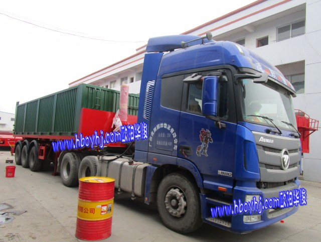 兩臺9米骨架式集裝箱后翻自卸半掛車順利完工交付湖南肖總