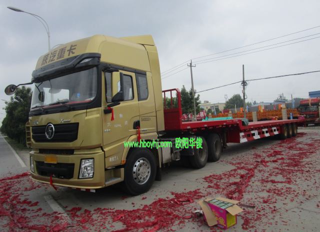 發布日期:2016-07-07 15:26:43 編輯:歐陽華俊 瀏覽量:653517.5米低平板半掛車完工交付!低平板掛車尺寸為:17.5米長×3米寬,客戶自己的戶口。此平板半掛車配陜汽德龍X3000黃金版430馬力牽引車,漂亮!提車時,客戶在公司門口放了鞭炮,預示著生意興隆紅紅火火,財源廣進發發發!感謝河南袁總對歐陽華俊的支持與關注,祝您的物流公司馬達一響,黃金萬兩;天天車輪一轉,一天一萬!