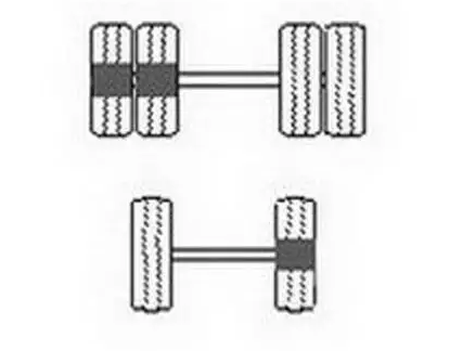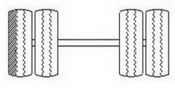 吃胎現象:雙前橋車輛轉向橋上單個輪胎外側不正常磨損。