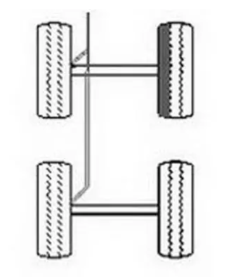 吃胎現象:車輛后橋一側輪胎外邊、一側輪胎內邊不正常磨損。