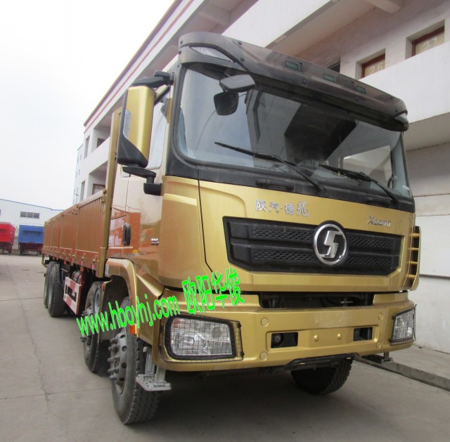 歐陽華俊80公分高欄板9.6米平板車廂配陜汽德龍X3000土豪金前四后八車圖片(1)