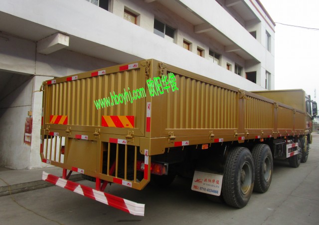 歐陽華俊80公分高欄板9.6米平板車廂配陜汽德龍X3000土豪金前四后八車圖片(3)