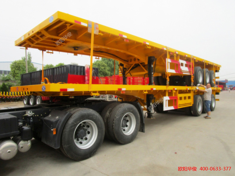 買放心半掛車,就到歐陽華俊!湖北歐陽華俊專用汽車有限公司始終堅持“以質(zhì)量求生存,以信譽求發(fā)展”的辦廠方針,秉承“車行天下,質(zhì)求完美”的經(jīng)營理念,贏得眾多司機朋友們和物流企業(yè)客戶的信賴與好評,公司本著互惠互利共同發(fā)展的宗旨,熱忱歡迎新老客戶來廠洽談業(yè)務(wù)。關(guān)于廣州低平板半掛車各長度及配置的具體價格,請聯(lián)系區(qū)域銷售經(jīng)理咨詢。