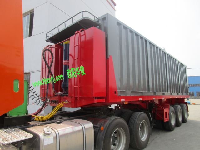 平板自卸半掛車俗稱:平板后翻自卸半掛車,就是用于運輸集裝箱的平板自卸車。用于運輸煤炭、砂石、礦石、渣土等,湖北歐陽華俊專用汽車有限公司對每一個產品都經過工程師的精心設計與技術人員的出廠檢驗,具有自重輕、重心低、軸距短等特點。非常適合山路已及高速公路行駛。近日,我司工程師將新出廠的平板自卸車開入沙場進行自卸檢驗。滿滿的一集裝箱砂石,輕松卸完。贏得了客戶的好評,也證名了我司優質的產品質量。