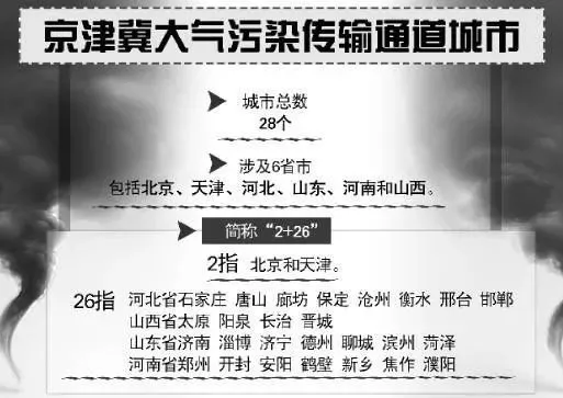 方案提出:2017年10月至2018年3月,京津冀大氣污染傳輸通道“2+26”城市PM2.5平均濃度同比下降15%以上,重污染天數同比下降15%以上。