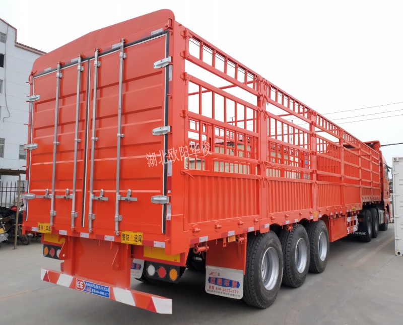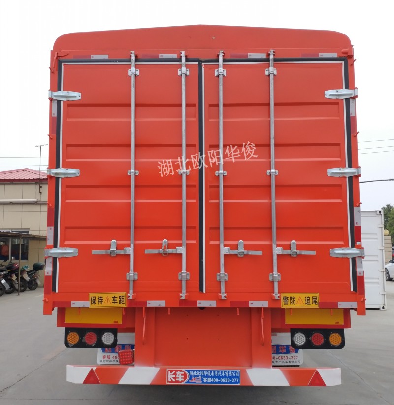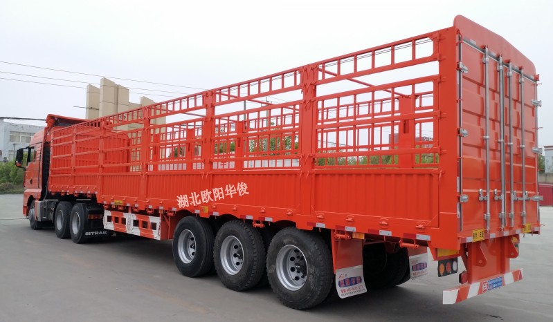 區(qū)域銷(xiāo)售經(jīng)理免費(fèi)為您提供方案桔紅色13米蒼柵半掛車(chē)交付-歐陽(yáng)華俊廠門(mén)口一道靚麗風(fēng)景線