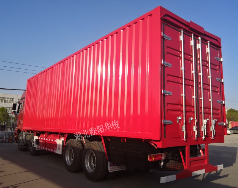 湖南周總的大紅色9.6米飛翼車廂-圖2