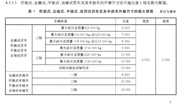 為此,查詢了GB1589-2016《汽車、掛車及汽車列車外廓尺寸、軸荷及質量限制》。其中,對于車輛外廓尺寸的要求中,非常清晰的可以看到,無論是倉柵式半掛車、欄板式半掛車、平板式半掛車、自卸式的貨車還是其他類型的半掛車,整車高度很高不得超過4米。
