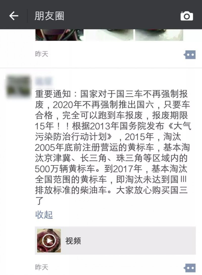 今天小編收到卡友發(fā)來的消息:國家對于國三不再強(qiáng)制報(bào)廢!2020年不再強(qiáng)制推出國六!卡友將他朋友圈掛靠公司發(fā)的很新國三消息發(fā)送給了小編!如下圖↓↓↓