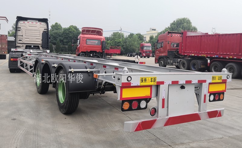 優(yōu)勢(shì)特征:歐陽華俊骨架式半掛車是在同類半掛車成熟結(jié)構(gòu)基礎(chǔ)上,結(jié)合歐美優(yōu)質(zhì)半掛車設(shè)計(jì)理念研發(fā)的新結(jié)構(gòu)產(chǎn)品;此車運(yùn)輸種類涵蓋較廣,可用于運(yùn)輸1臺(tái)45英尺、2臺(tái)20英尺或1臺(tái)20英尺集裝箱,具有低貨臺(tái)、輕量化、高可靠性、裝載方便適用性強(qiáng)等特點(diǎn)。