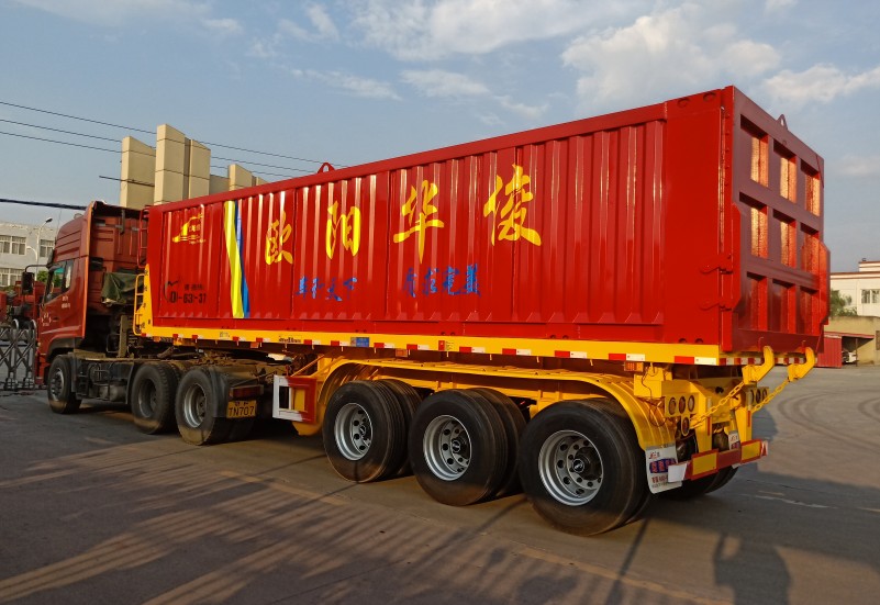 發(fā)布日期:2018-09-16 04:21:52 編輯:歐陽華俊 瀏覽量:23739米平板后翻自卸半掛車如期交付賀總,后翻自卸車作為歐陽華俊暢銷車型之一,它具有重心低,舉升不易翻車等特點(diǎn)。車架用高強(qiáng)鋼制成,大大增加了承載強(qiáng)度。重心降低至1.3米一1.4米,運(yùn)貨中不上晃不易側(cè)翻,對輪胎和板簧、車架損害降低許多。