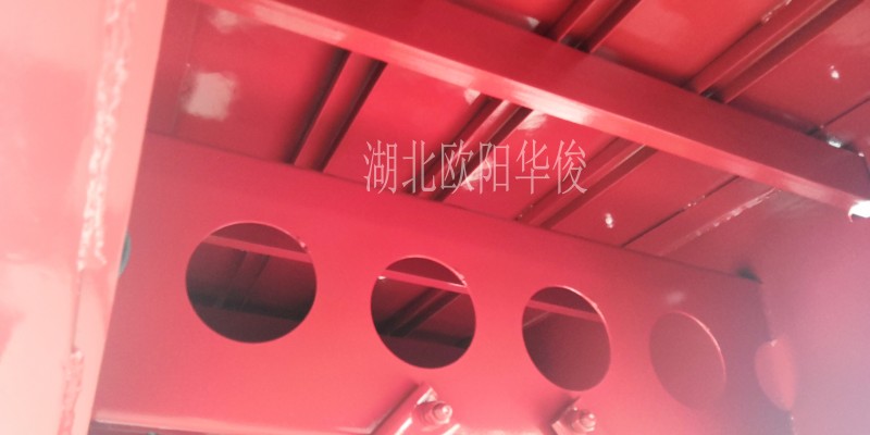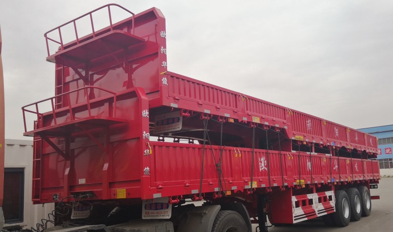 大概配置參數為:外形尺寸:13米長×2.55米寬×2.9米高(離地高),欄板高度:600MM;腹板厚度:6MM;上翼板厚度:10MM;下翼板厚度:10MM;底板厚度:2.75厚花紋板;貫穿梁規格:80槽鋼;邊梁規格:140型材;立柱規格:180#型材(全活);車身顏色:華俊大紅。