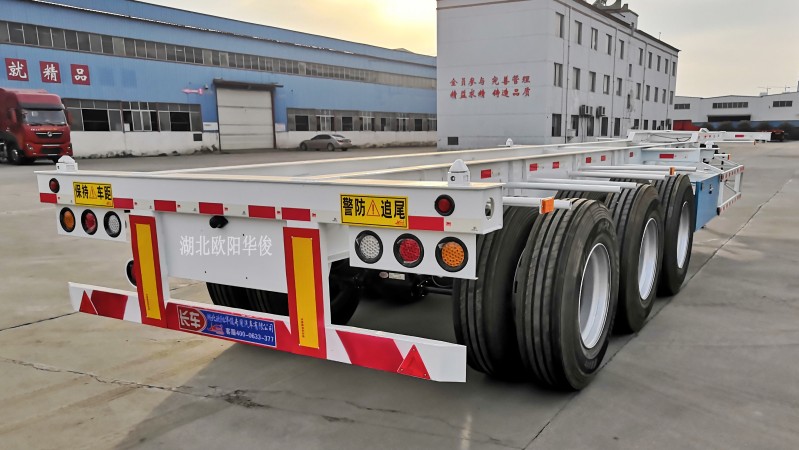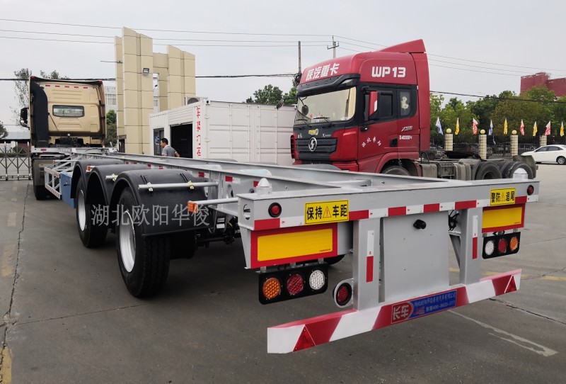 優勢特征:歐陽華俊骨架式半掛車是在同類半掛車成熟結構基礎上,結合歐美優質半掛車設計理念研發的新結構產品;此車運輸種類涵蓋較廣,可用于運輸1臺45英尺、2臺20英尺或1臺20英尺集裝箱,具有低貨臺、輕量化、高可靠性、裝載方便適用性強等特點。