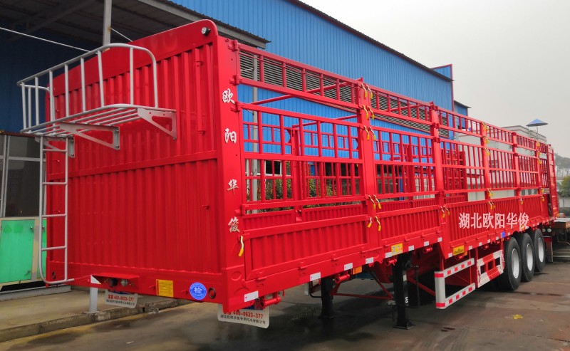 好消息:歐陽華俊2019全新超輕型高欄半掛車隆重上市啦,自重6噸左右,能上叉車的超輕型高欄半掛車銷量火爆,新型合金式底板,此款底板的防水效果及抗壓效果都讓客戶很滿意。