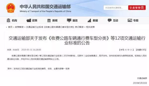 而不到一周的時間,交通運輸部再次發布《收費公路車輛通行費車型分類》行業標準的公告。
