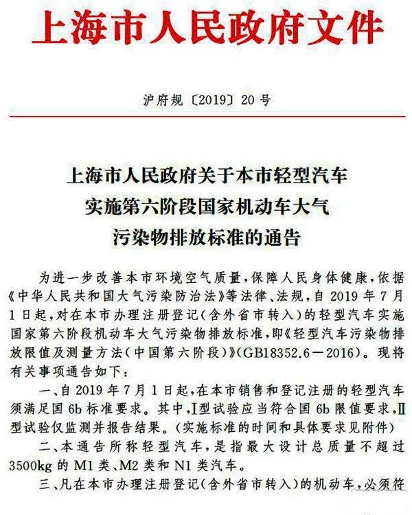 日前,上海市人民政府發布通告,指出將在2019年7月1日正式提前實施國六b排放標準,實施對象為很大設計總質量不超過3500kg的M1類、M2類和N1類(包括微卡、小卡)汽車。
