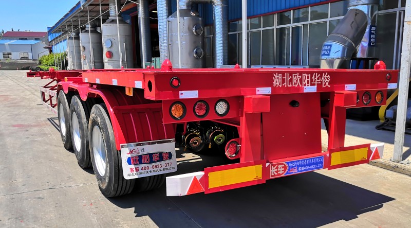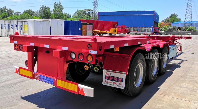 歐陽華俊骨架式半掛車是在同類半掛車成熟結構基礎上,結合歐美優質半掛車設計理念研發的新結構產品;此車運輸種類涵蓋較廣,可用于運輸1臺40英尺、2臺20英尺或1臺20英尺集裝箱,具有低貨臺、輕量化、高可靠性、裝載方便適用性強等特點。