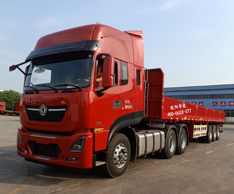 東風天龍 KL465馬力配歐陽華俊13米直梁欄板掛交付周老板,祝提車大吉