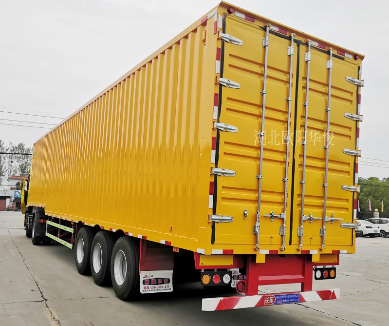 廂式半掛車主要適用于家用電器、輕紡貨物、煤炭、沙石等建筑材料以及圖盤貨物的運輸。歐陽華俊生產的廂式半掛承載力強,安全系數高、設計合理、堅固耐用,工藝制造先進,是您的不二之選!