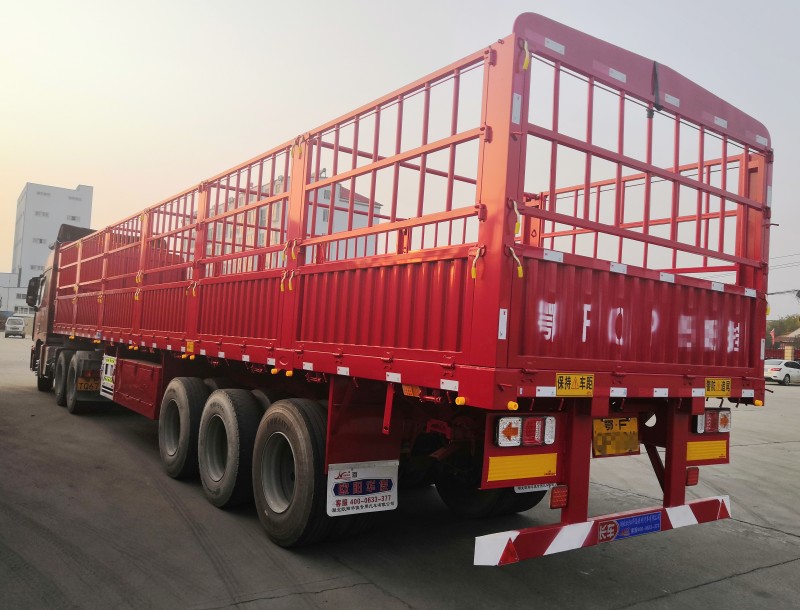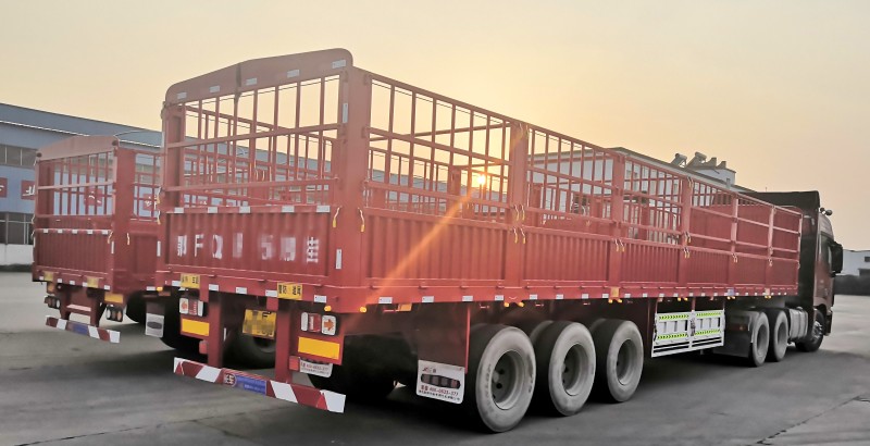 3臺直梁倉欄半掛車發車回家