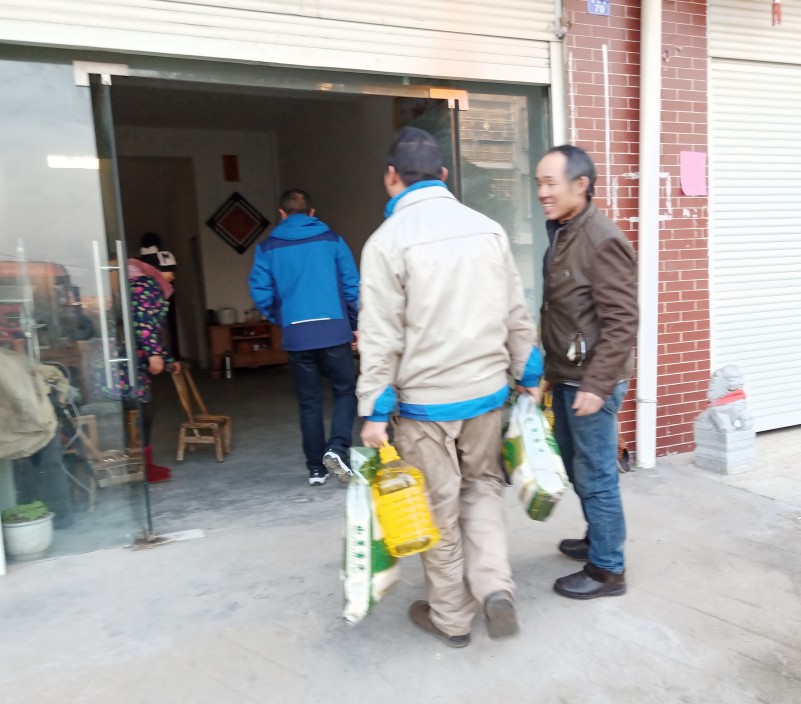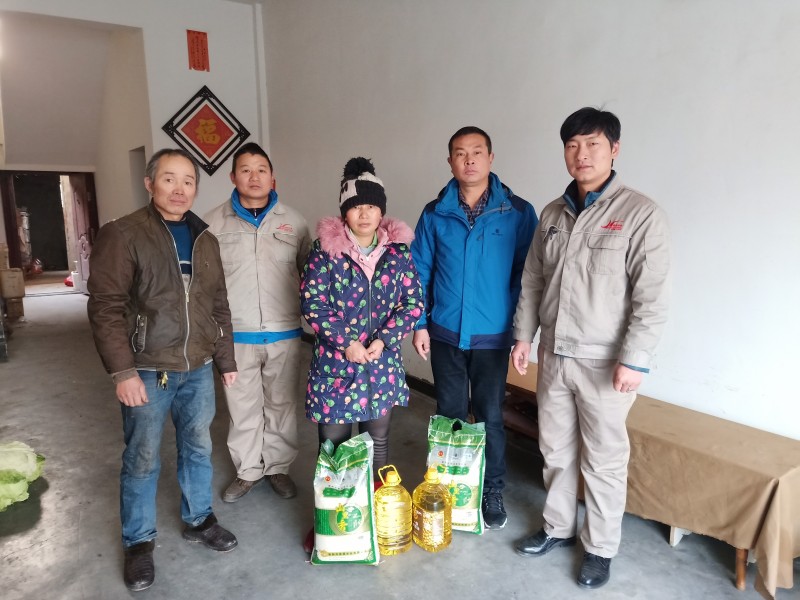 凜冽的寒風抵擋不住關懷的腳步,深冬的嚴寒凍結不了溫暖的心。在新年來臨之際,歐陽華俊總經理歐陽德保,攜生產部部長徐新及副部長袁明才,底架車間主任龔明鋒,上裝車間主任許明濤在各鄉鎮走訪慰問困難員工家庭,為其送去米油等生活必備品,把公司的溫暖、關懷和祝福送到大家的心坎上。