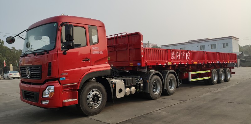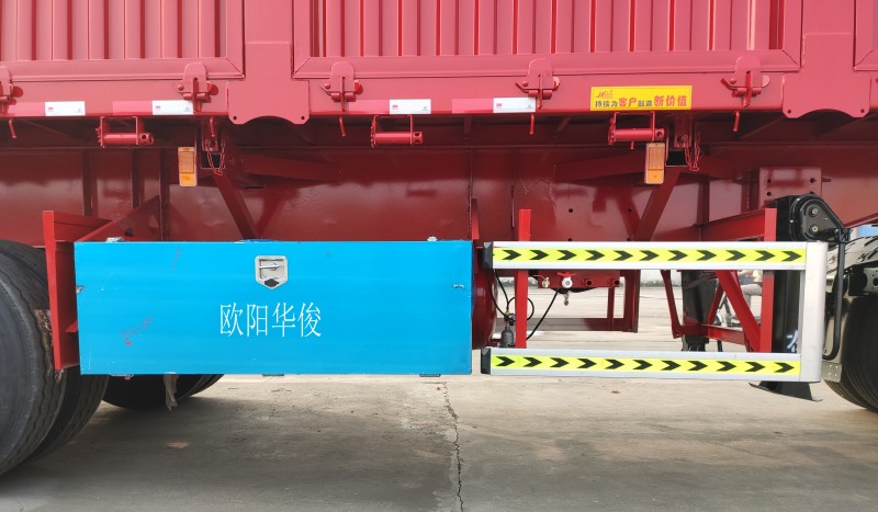 此側(cè)翻尺寸為:13米長×2.55米寬×2.9米高。墻板高度為60公分高,6支舉升油缸,1支移位油頂。可選擇翻轉(zhuǎn)方向(左邊翻,右邊翻,左右雙邊翻)。該車左右兩邊都可翻,可有效提高運(yùn)輸散裝零散貨物的運(yùn)輸效率。配置就是這么高端,翻山越嶺就是這么靠譜。
