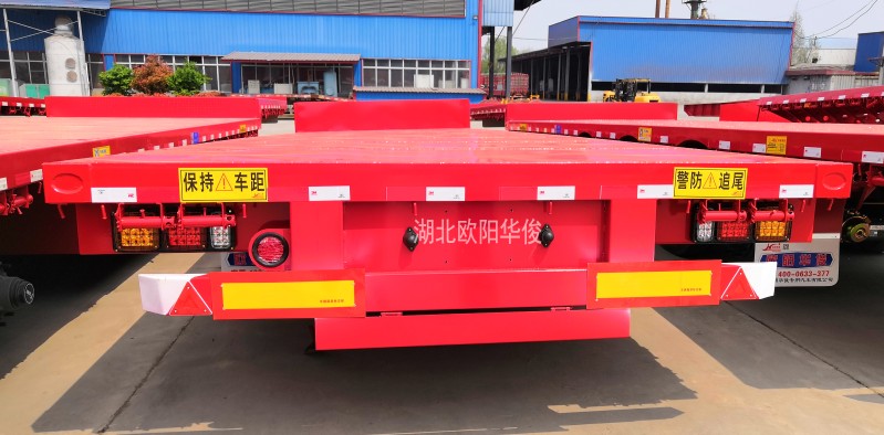 歐陽華俊13.75米低平板半掛可按客戶要求設計為鋪底槽,方便走叉車配置,也可按客戶要求設計為拉挖機配置,滿足實際貨物運載需求。歐陽華俊掛,必屬精品!歐陽華俊掛質量經得起檢驗......