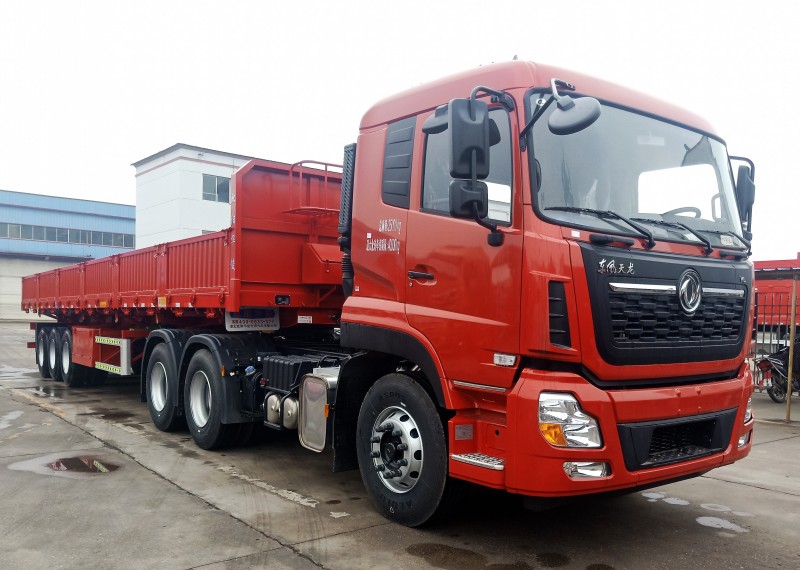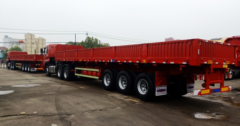 此側(cè)翻尺寸為:13米長(zhǎng)×2.55米寬×2.9米高。墻板高度為60公分高,6支舉升油缸,1支移位油頂。該車左右兩邊都可翻,可有效提高運(yùn)輸散裝零散貨物的運(yùn)輸效率。適用于煤炭、礦石、泥沙、建筑物料等散裝零散貨物的運(yùn)輸。