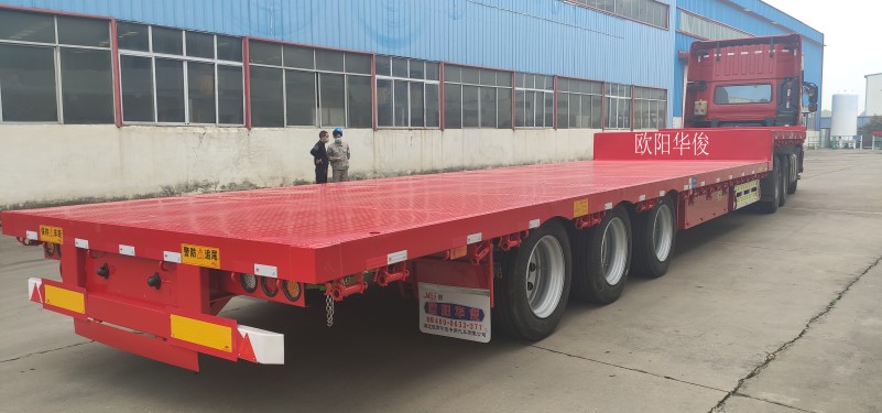 發布日期:2020-03-26 02:45:15 編輯:歐陽華俊 瀏覽量:1821陜西漢中李總舟車勞頓,不遠千里來到湖北歐陽華俊,為了什么?那肯定有吸引的地方,有魅力的地方。當我們擁有一輛好的半掛車往往能在行駛途中事半功倍,好品質減輕了司機朋友的顧慮,在電光火石間來去自如。我們瀟灑來也必將瀟灑回,千里行,萬里路,安全無憂在左右。愿已經購車客戶或打算購車的客戶事事順心順意。我們一起來看看李總的平板半掛車吧!