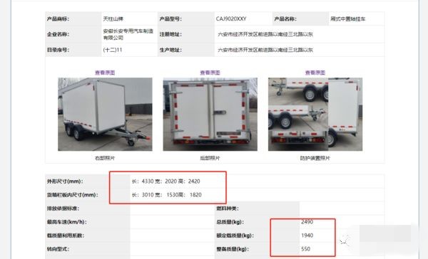 除了上面的主流車(chē)型之外,330批公告中還有幾款中置軸車(chē)型“獨(dú)具特色”,其中安徽長(zhǎng)安生產(chǎn)的中置軸廂車(chē)長(zhǎng)度不到5米,可選擇單軸可雙軸版本,很大重質(zhì)量不超過(guò)3噸,也許是為輕卡、皮卡量身打造的。
