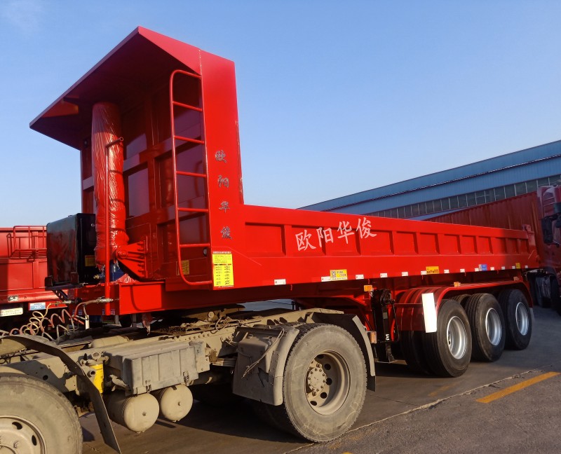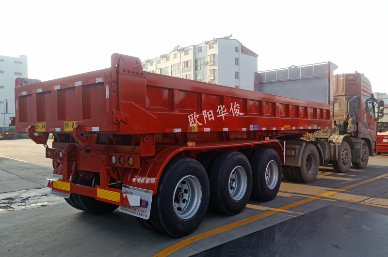 歐陽華俊標準8.5米后翻自卸半掛廠家直銷,交付客戶