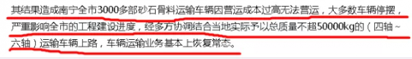產能的提升必然會促成對運輸車輛需求的加大,而近年來由于嚴查超載,柳州市也對車輛的標準準裝載和車廂合規做出了嚴格限制,結果調查發現治超造成了南寧全市3000多部砂石骨料運輸車輛因營運成本過高無法營運,大多數車輛停擺,嚴重影響了全市的工程建設進度。