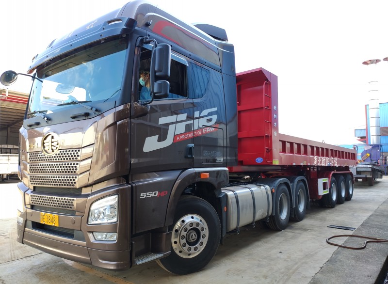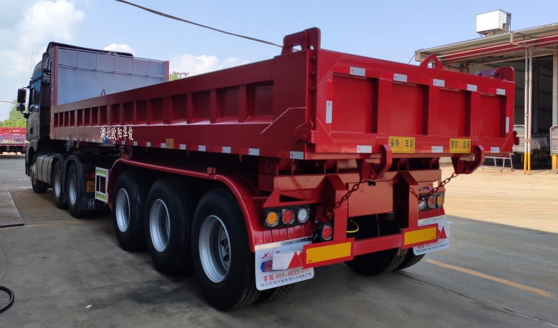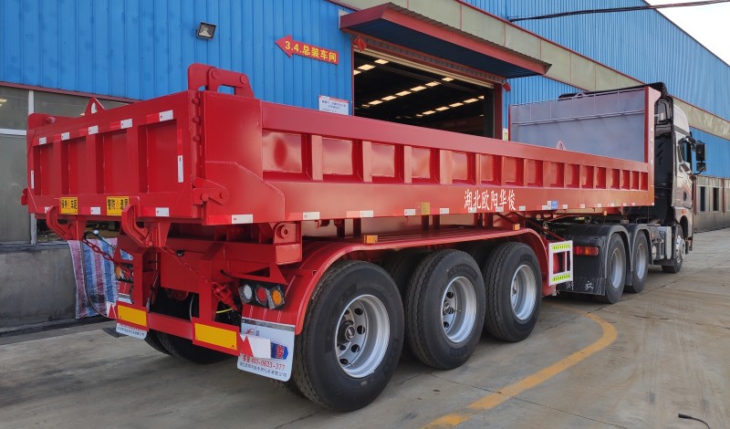 華俊堅固耐用9.5米后翻自卸半掛車交付秦總-發(fā)車宜昌
