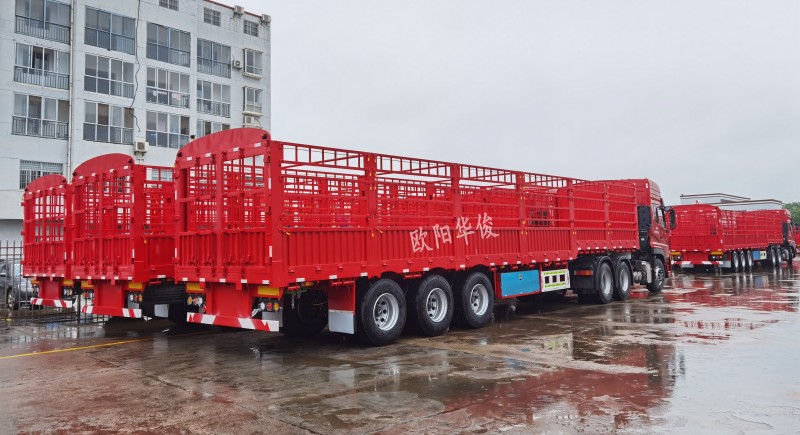 重磅頭條丨歐陽華俊19臺出口車高欄半掛批量發往海外進行中...