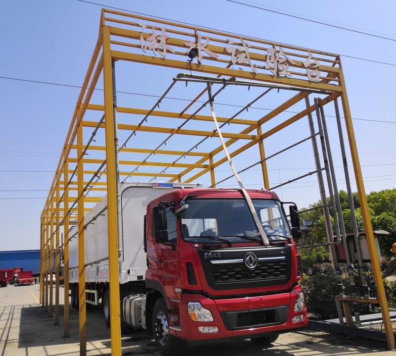 出廠前的飛翼車廂做淋水試驗(yàn)檢測