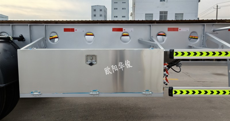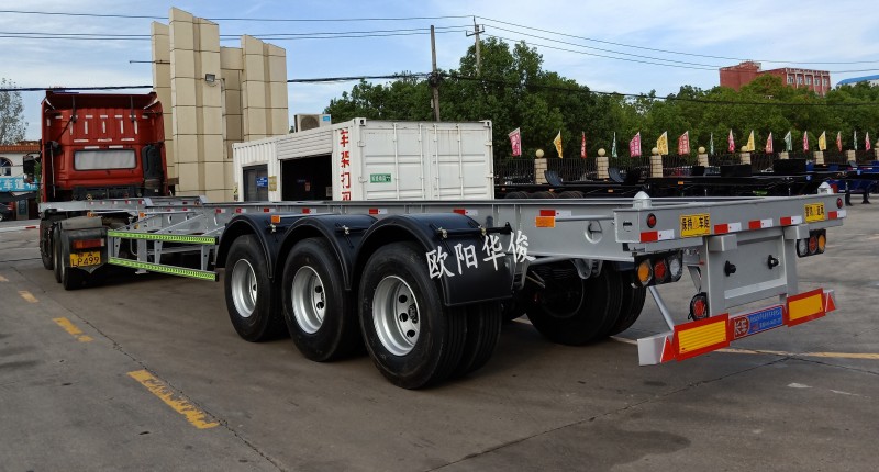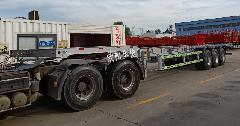 歐陽華俊骨架式半掛車是在同類半掛車成熟結構基礎上,結合歐美優質半掛車設計理念研發的新結構產品,上裝可搭配集裝箱、卷簾、飛翼、冷藏車、散裝飼料車等使用,裝載方便,為客戶帶來更高的經濟效益。