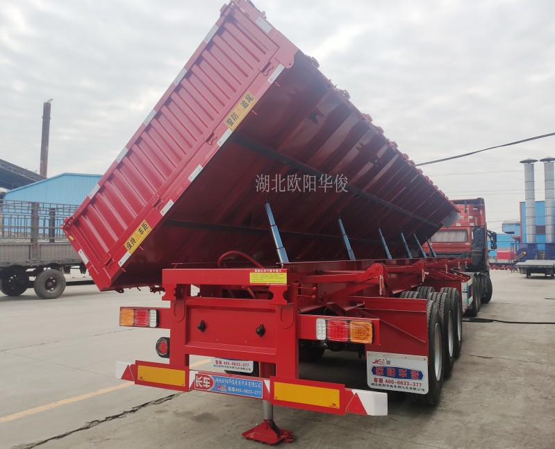 側(cè)翻自卸半掛車:可有效地提高裝卸機(jī)運(yùn)輸散裝零散貨物的運(yùn)輸效率,自卸式半掛車適用于煤炭、礦石、泥沙、建筑物料等散裝零散貨物的運(yùn)輸。