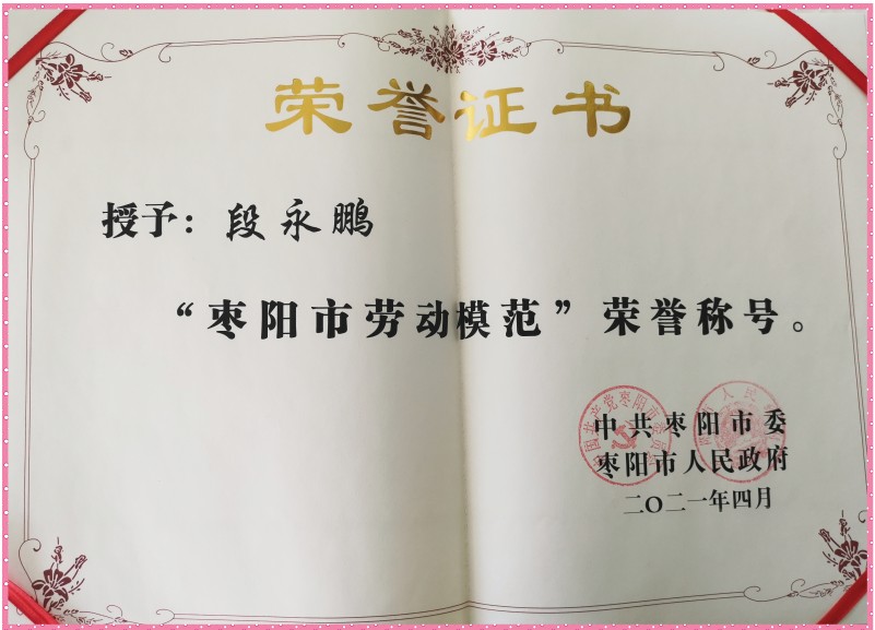祝賀歐陽華俊員工段永鵬被評選為棗陽市勞動模范~致敬奮斗者!