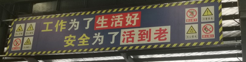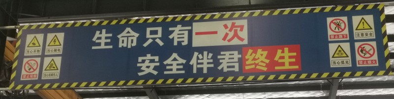 公司的每個車間內,在顯眼的位置都懸掛的有各種安全標識語.