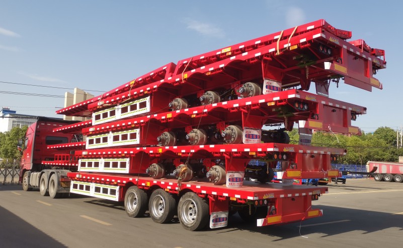 平板半掛車拉貨兼容性大,因此根據不同客戶的拉貨需求,設計車型底架結構有所不同,有貫穿梁直接打斷平焊的,也有鋪底槽底架結構,多種款式任君選擇。