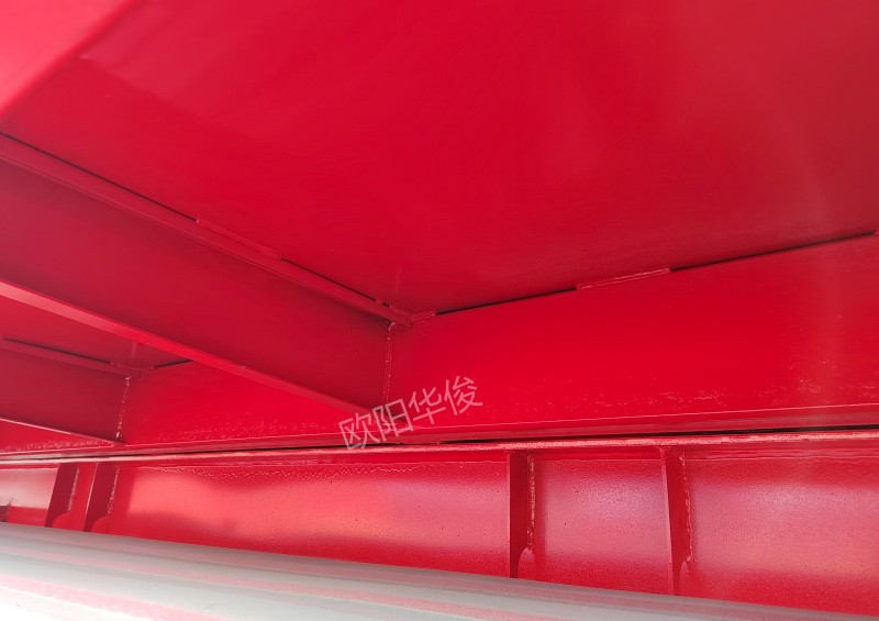 外觀尺寸:10米長×2.55米寬×3.5米離地高。大梁采用高強鋼材質,上12下12中6,車橋采用正宗廣東富華橋,帶ABS,10×13板簧,底架橫梁及車廂下邊梁采用自折件制作,底架副梁及車廂上邊梁采用高強方管制作,底板3.0mm高強鋼平板,車廂邊板2.0mm高強鋼平板,佳恒191油頂,取力器、液壓油箱,液壓油配套。