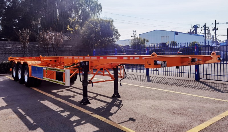 有20英尺、40英尺、45英尺兩軸或三軸危險品骨架半掛車,不同長度,滿足你的裝貨需求~