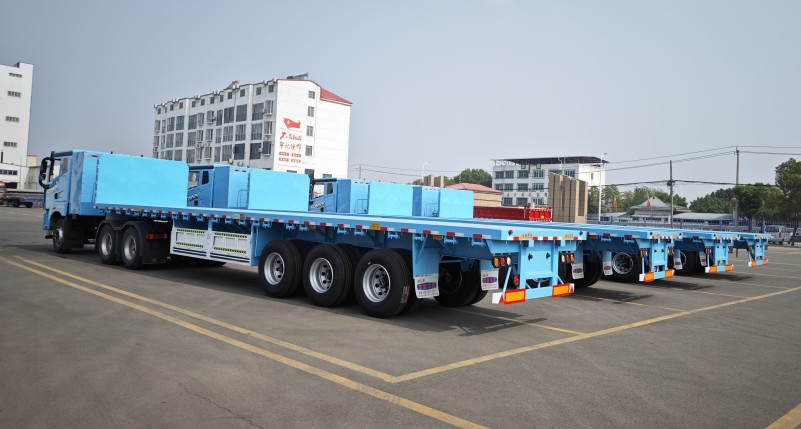 歐陽(yáng)華俊生產(chǎn)的13米平板半掛車,底架結(jié)構(gòu)多樣化,可滿足不同客戶的拉貨需求,解鎖N多種運(yùn)輸場(chǎng)景。