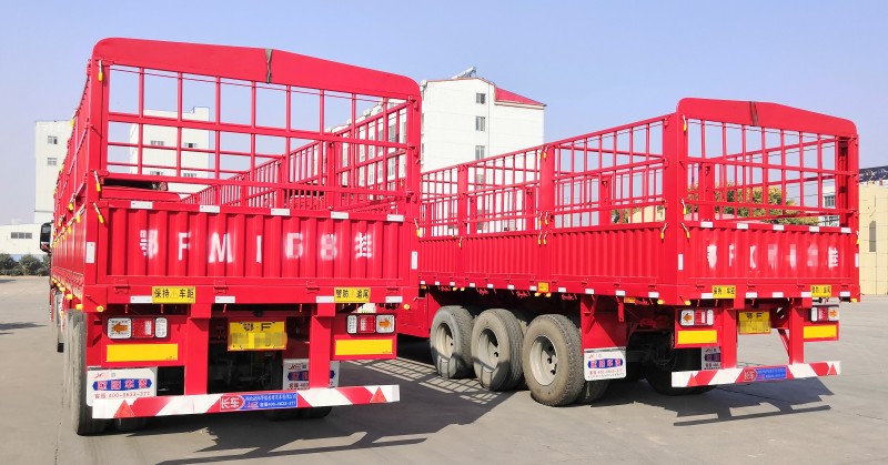 11月初,歐陽華俊廠區內一片忙碌,來公司提車的朋友排著隊,在準備出廠的客戶隊伍中,3輛直梁倉欄半掛車格外引人注目——這就是來自保康陳老板和朋友的13米倉欄半掛車。此掛車的尺寸是:13米長x2.55米寬x1.6米高,配上特殊的后尾樣式(墻板加花欄),特別拉風,太帥氣啦!