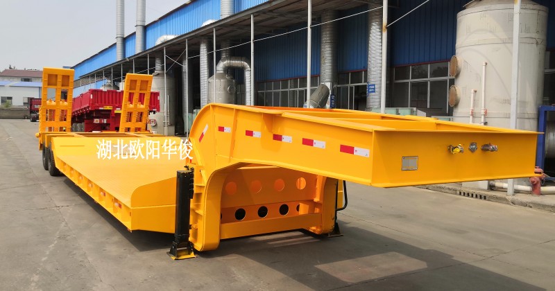 歐陽華俊生產的2線4軸低平板半掛車已交付國外客戶,小編今日分享此特種平板半掛車的精美圖片給愛車的卡友們。據了解,此車長度為13.3米左右,寬度為3米,后帶一對機械爬梯,很低工作平臺離地高60公分。多功能設計,全方位滿足客戶需求!實力打造非凡,技術成就精品! 國外出口