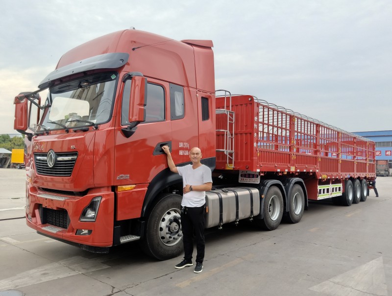 自古逢秋悲寂寥,我言秋日勝春朝,看著歐陽華俊廠區(qū)內(nèi)每天一片繁忙景象,這不正代表著收獲和希望嘛!一大早河南區(qū)域的林總駕駛新提的東風(fēng)天龍KL465馬力牽引車頭來歐陽華俊掛新訂的同色系1.6米高高欄,即將離廠,奔赴財(cái)富大道! 客戶熱情的和愛車合影紀(jì)念