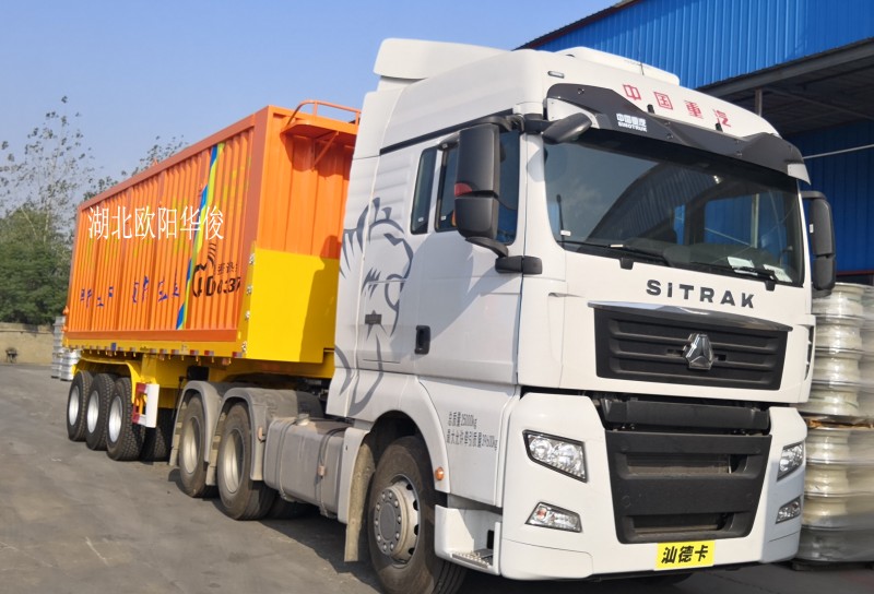 金秋十月是桂花飄香的季節,一朵朵黃色的桂花散發出濃濃的香味,讓秋天的每一個角落都充滿香氣;也是收獲的季節,收獲金黃,收獲火紅,收獲翠綠,收獲希望……歐陽華俊的2臺9米集裝箱后翻自卸平板半掛車已全部完工整裝待發,等待客戶辦好提車出門手續,打好車架號,這些全新的半掛車廂就可以和它的主人一起啟程、回