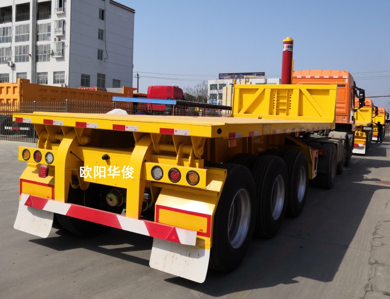歐陽華俊3臺8.5米輕型平板后翻自卸半掛車交付客戶 2018-03-29