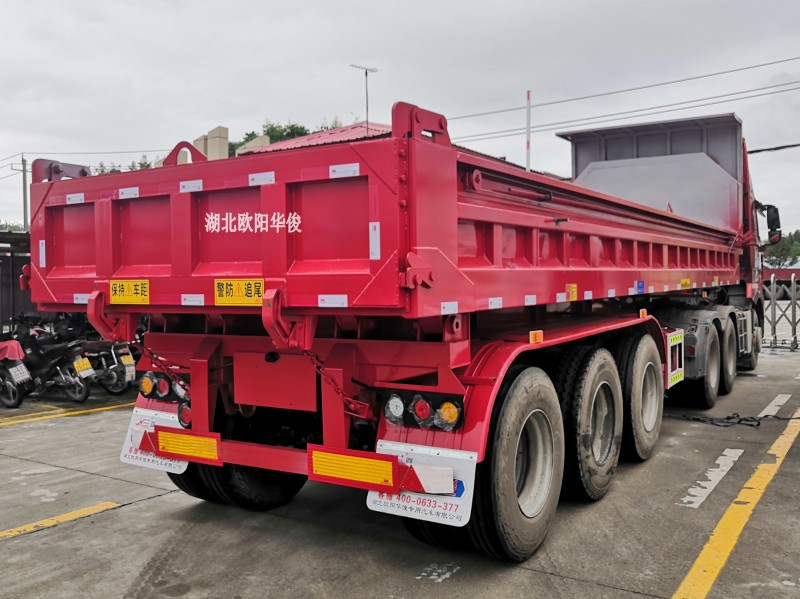 湖南客戶魯總訂購了歐陽華俊9米后翻自卸半掛車帶電動篷布,整車車身采用優質鋼材,先進的技術,嚴格的生產工藝制作而成,整車結構合理、性能可靠、操作簡便、外形美觀。 標準后翻自卸半掛車供客戶選擇的長度有7.5米、8米、8.5米、9米、9.3米、9.5米、10米長,2.5