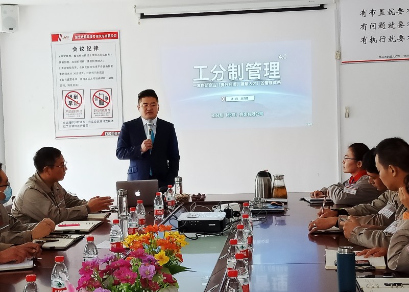 10月17日,工分制(北京)教育咨詢公司劉海建老師蒞臨湖北歐陽華俊專用汽車有限公司,就《工分制管理》對(duì)公司管理層及后勤員工管理培訓(xùn),銷售部、汽車服務(wù)部員工專項(xiàng)培訓(xùn)。 劉海建老師就如何運(yùn)用《工分制管理》激發(fā)員工內(nèi)生動(dòng)力和《企業(yè)成功要素》,指導(dǎo)歐陽華俊發(fā)展,提高效益,落實(shí)